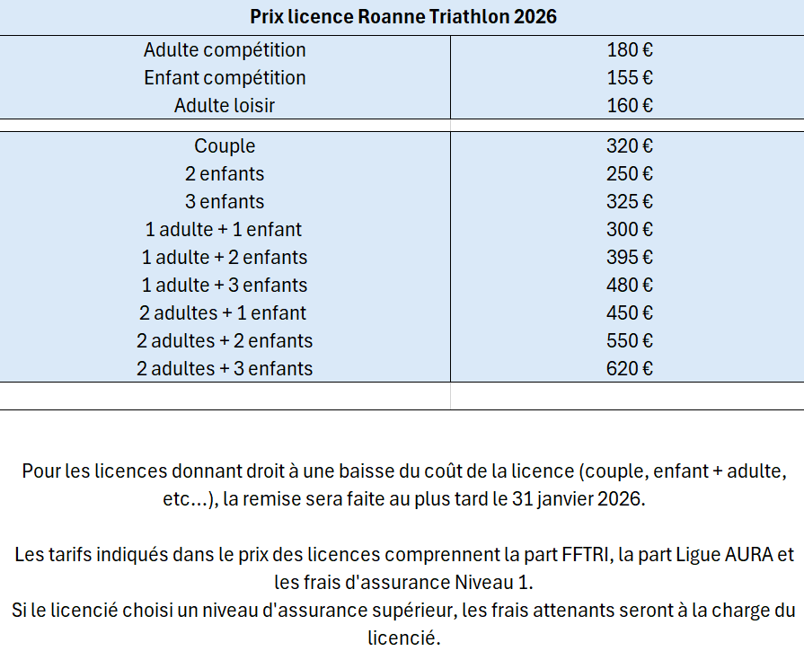 Vous trouverez ci-dessous les tarifs pour vous licencier au club :